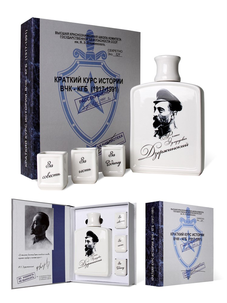 Книга-сюрприз "Краткий курс истории ВЧК-КГБ (1917-1991гг.)" (штоф с изображением Ф.Э.Дзержинского, 3 рюмки)