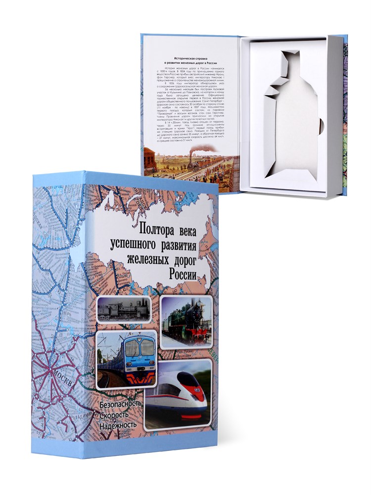 Книга-шкатулка "Успешное развитие железных дорог России" под водку. Помещается только плоская бутылка 0,25л.